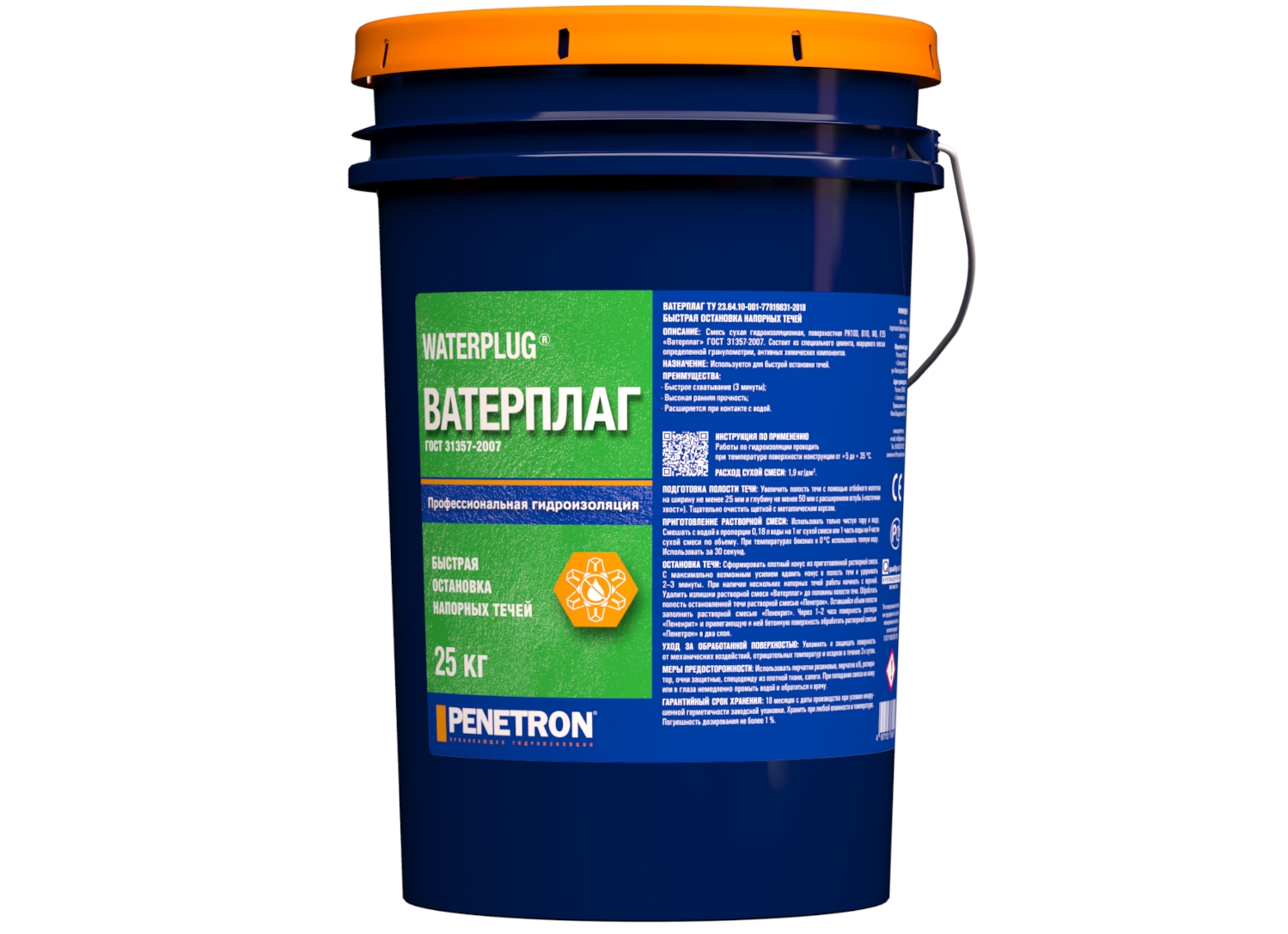 Смесь сухая строительная на цементном вяжущем для устранения напорных течей Wp6 «Ватерплаг» ГОСТ 34804-2021. Используется для быстрой остановки течей.